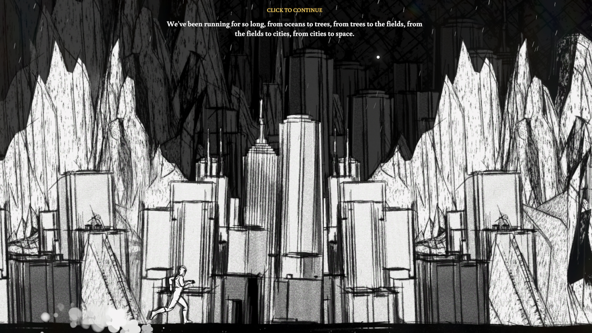 We’ve been running for so long, from oceans to trees, from trees to the fields, from the fields to cities, from cities to space.